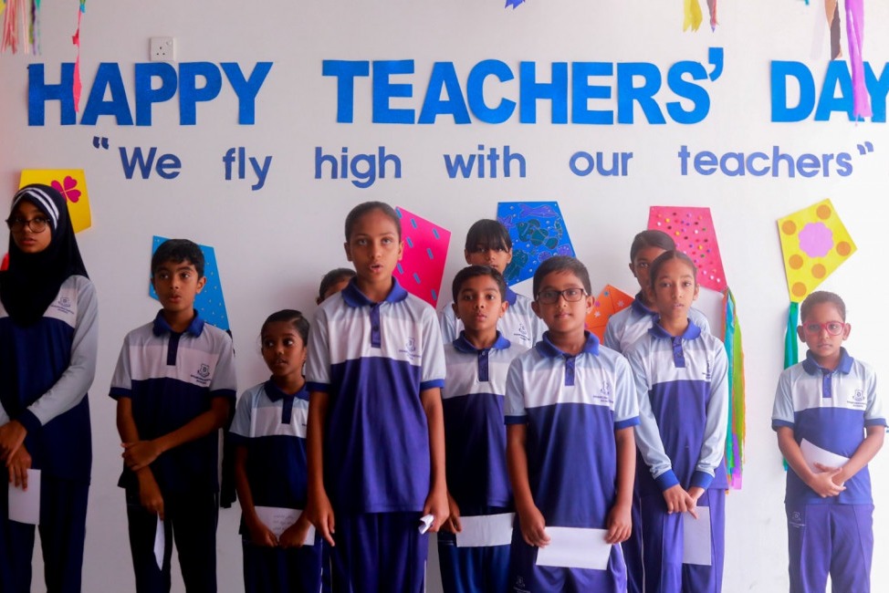 ސްކޫލެއްގައި ބައިނަލްއަގުވާމީ މުދައްރިސުންގެ ދުވަސް ފާހަގަކުރަނީ… ފޮޓޯ: ދައުލަތުގެ މީޑިއާ