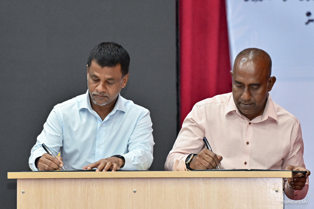 މި ރަސްމިއްޔާތުގައި މި މަޝްރޫޢުގެ އެއްބަސްވުމުގައި އިސްލާމީކަންތައްތަކާ ބެހޭ ވުޒާރާގެ ފަރާތުން ސޮއިކުރެއްވީ އިސްލާމީކަންތައްތަކާ ބެހޭ ވަޒީރު ޑރ. މުޙައްމަދު ޝަހީމް އަލީ ސަޢީދުއެވެ. އަދި އެސް.އޭ.އެސް އީ ކޮންސްޓްރަކްޝަން ޕްރައިވެޓް ލިމިޓެޑްގެ ފަރާތުން ސޮއިކުރެއްވީ އެކުންފުނީގެ ފަރާތުން އިބްރާހިމް ފަސީހުއެވެ.