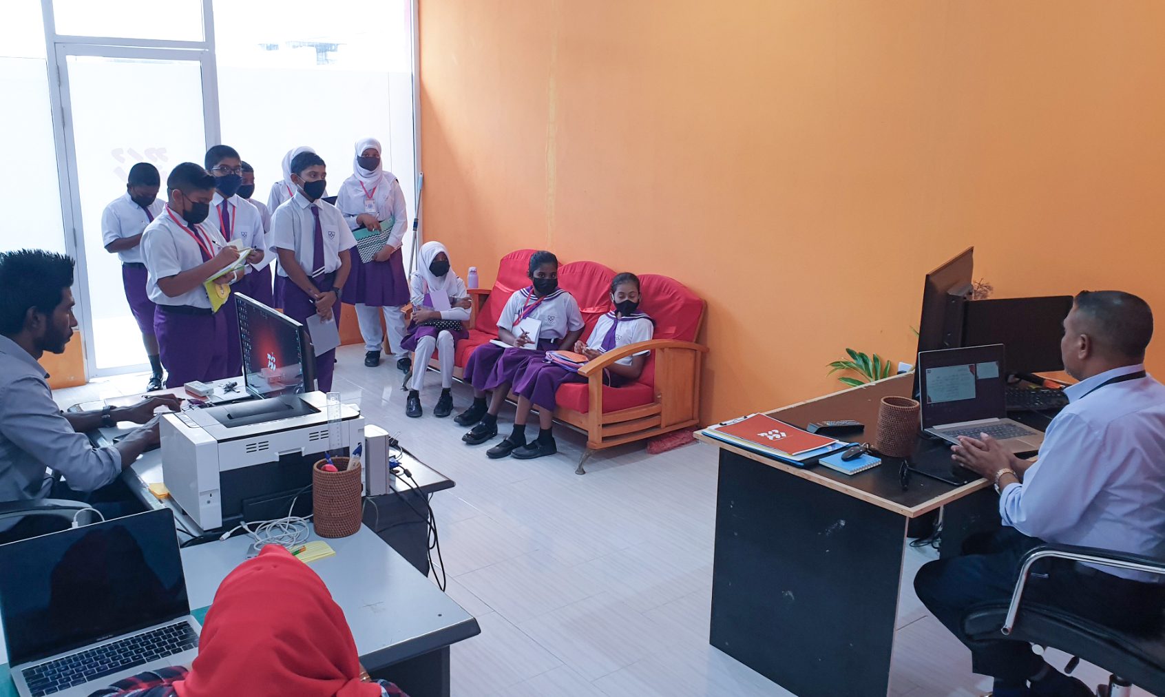 ތިނަދޫ ސްކޫލްގެ ދަރިވަރުން މައިދާނީ ތަޖުރިބާ ހޯދުމަށް ހުވަދޫ ނިއުސްރޫމް އަށް މިއަދު ކުރެއްވި ޒިޔާރަތުގެ ތެރެއިން- ހުވަދޫ ފޮޓޯ