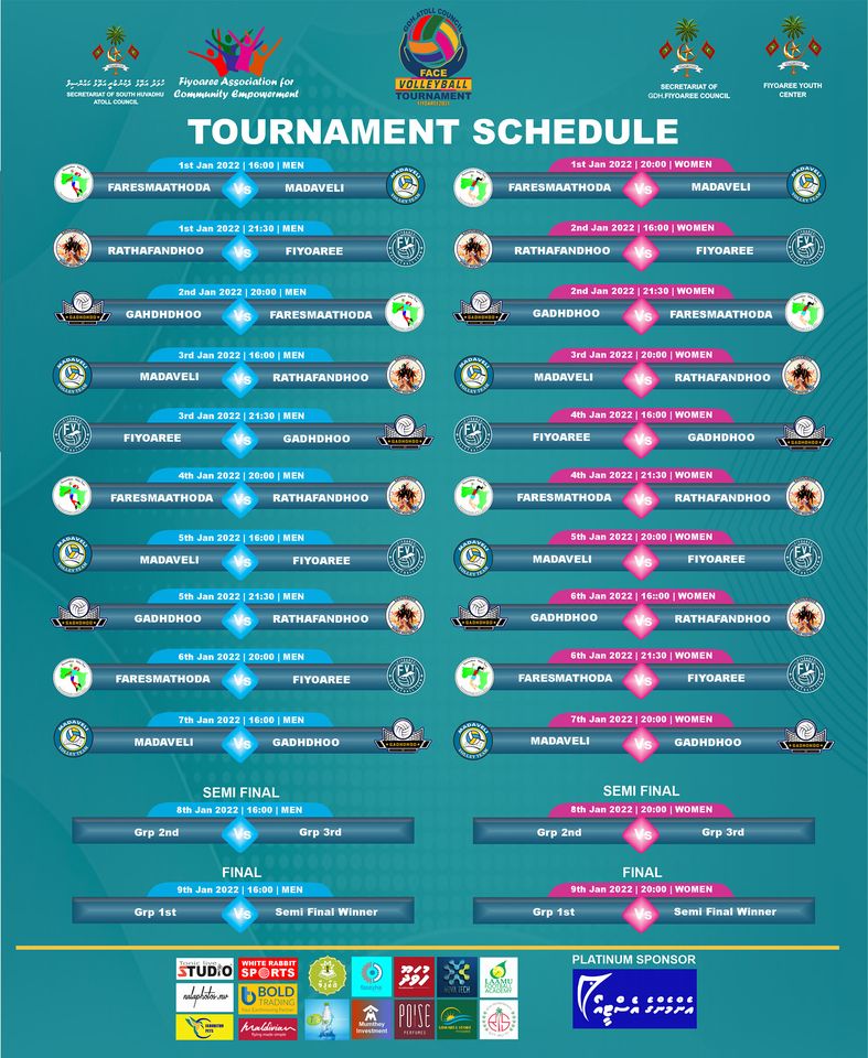 “ގދ.އަތޮޅު ކައުންސިލް ފޭސް ވޮލީބޯޅަ ޓޯނަމެންޓް” ގެ މެޗުތައް ކުޅުމަށް ހަމަޖެހިފައިވާ ތާވަލު
