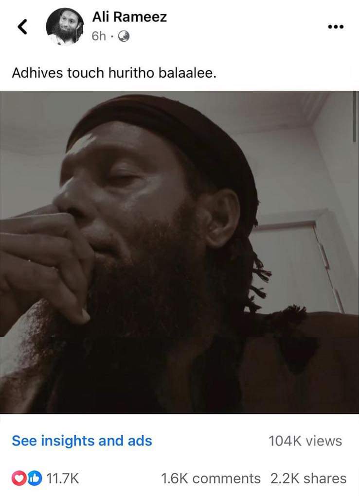 އާދަ ކާދައިގެ މަތިން ޝޯޝަލް މީޑިޔާ ހާވަމުން ދަނިކޮށް މީގެ އަށް ގަޑިއިރު ކުރިން ރާއްޖޭގެ ކުރީގެ މަޝްހޫރު ލަވަކިޔުންތެރިޔާ އަލީ ރަމީޒު ފޭސްބުކް އަށް ދޫކޮށްލާފައިވާ ވީޑިއޯއެއް ލޮލަށް އަޅައިގަތެވެ. ވީޑިއޯ ޕްލޭ ކުރުމުގެ ކުރިން އޭގައި ލިޔެފަ އިން އިބާރާތް ކޮޅު ލޮލުގައި އަޅައިގަތެވެ.