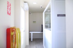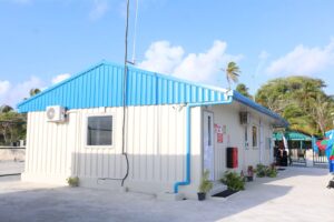 ބައިނަލްއަގުވާމީ ބަންކަރިންގ ޚިދުމަތް ދިނުމަށް އުޅޭ މުވައްޒަފުނަށް ޚާއްސަ އިމާރާތް، “އުލިގަމު އިންޓަނޭޝަނަލް ޝިޕް އެންޑް ޕޯޓް ސެކިއުރިޓީ ގޭޓް (އައިއެސްޕީއެސް)”. ފޮޓޯ: ހުވަދޫ މީޑިއާ