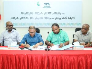 ހއ.އިހަވަންދިއްޕޮޅު ޑޮކްޔާޑަކާއި ސްލިޕްވޭއެއް ތަރައްގީ ކުރުމަށްޓަކައި އެމްޕީއެލްއިން އިހަވަންދޫ ކައުންސިލާއެކު ސޮއިކުރުން. ފޮޓޯ: ހުވަދޫ މީޑިއާ