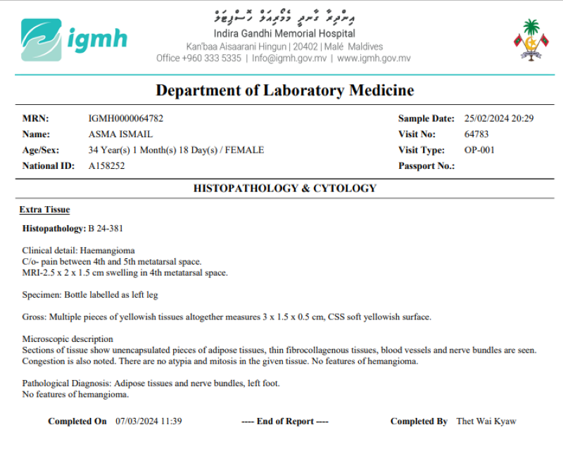 އަސްމާގެ ފައި އޮޕަރޭޝަނަށްފަހު