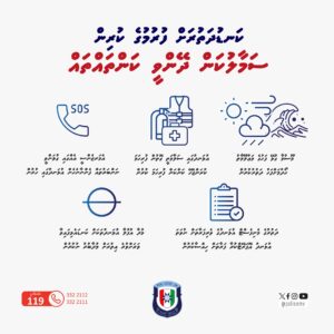 ކަނޑު ދަތުރުކުރާ ފަރާތްތަކުން ދަތުރަށް ފެށުމުގެ ކުރިން މޫސުމާބެހޭ އެންމެފަހުގެ މައުލޫމާތު ހޯދައި، ރައްކާތެރިކަމުގެ ފިޔަވަޅުތައް އެޅުމަށް ފުލުހުންގެ ޚިދުމަތުން ރޭ އިލްތިމާސްކޮށްފިއެވެ.