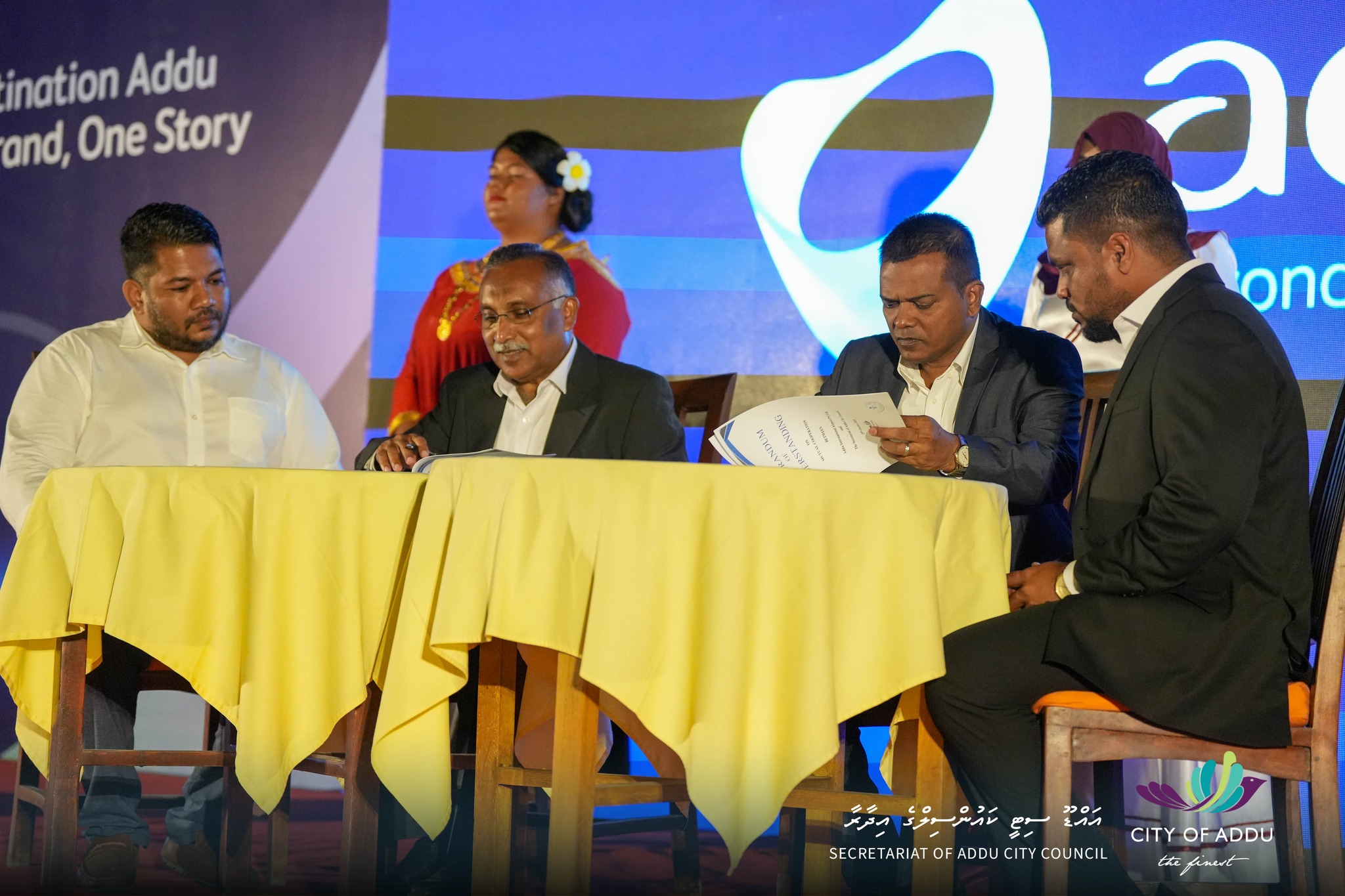 “އައްޑޫ؛ ބިޔޯންޑް ދަ އީކުއޭޓާ” ގެ ނަމުގައި މި އައު ބްރޭންޑް އިފްތިތާހުކުރުން، އައްޑޫސިޓީ މޭޔަރާއި ވަޒީރު ފައިސަލް އަދި އެހެނިހެން އިއްޒަތްތެރި ބައވެރިން؛ ކެނެރީފް ރިސޯޓުގައި………….ފޮޓޯ: އައްޑޫސިޓީކައުންސިލް