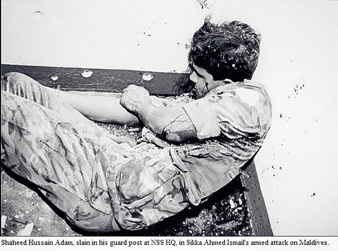 ޝަހީދު ހުސައިން އާދަމް، ނޮވެމްބަރު 3 އުދުވާނީ ހަމަލާގެ ތެރެއިން……………….ފޮޓޯ:އާކައިވް ރާއްޖެ