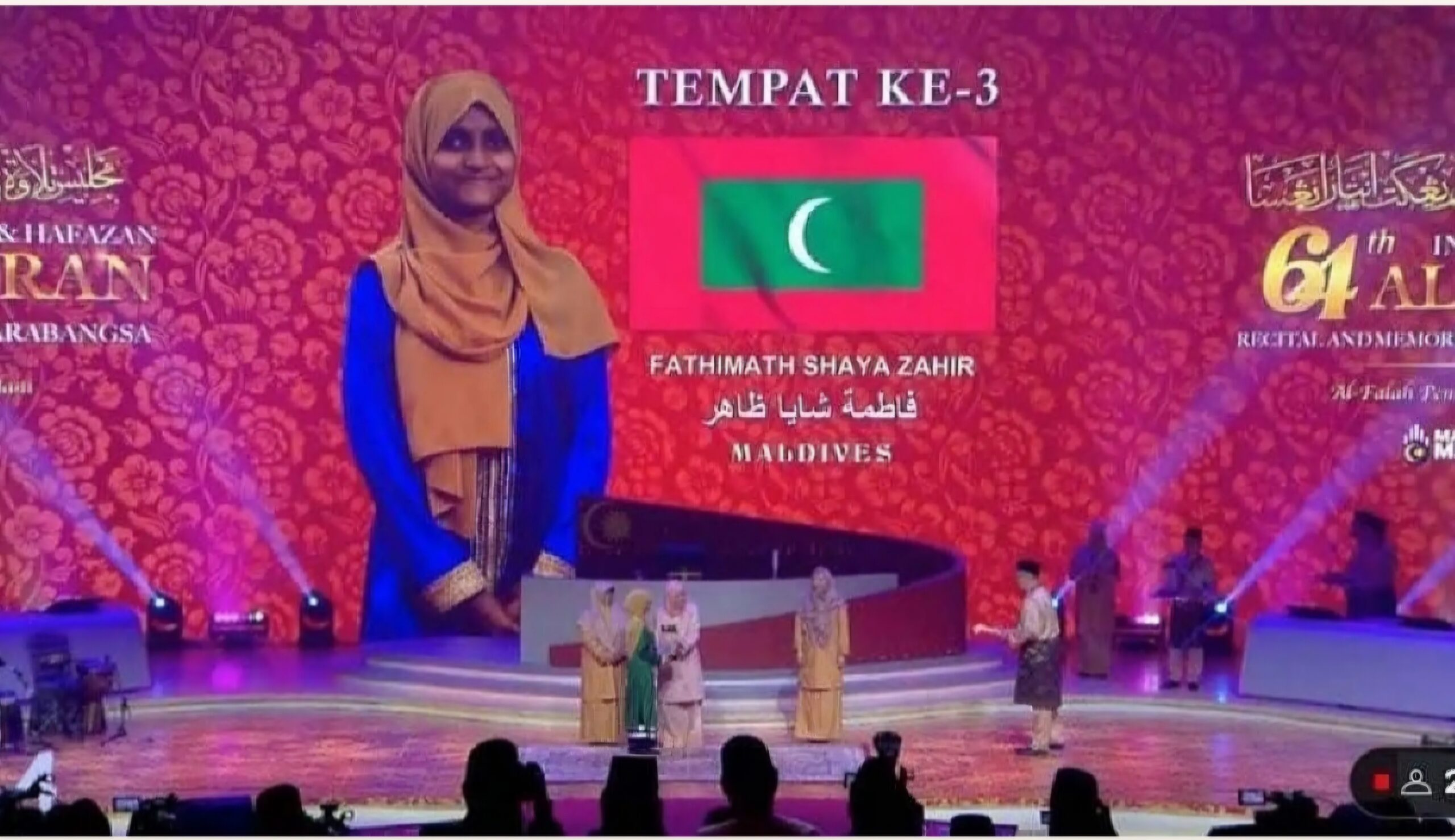 މެލޭޝިއާގައި ބޭއްވި ބައިނަލްއަގުވާމީ ގުރުއާން މުބާރާތަކުން ދިވެހި ދަރިވަރަކަށް ތިން ވަނަ ލިބިއްޖެ