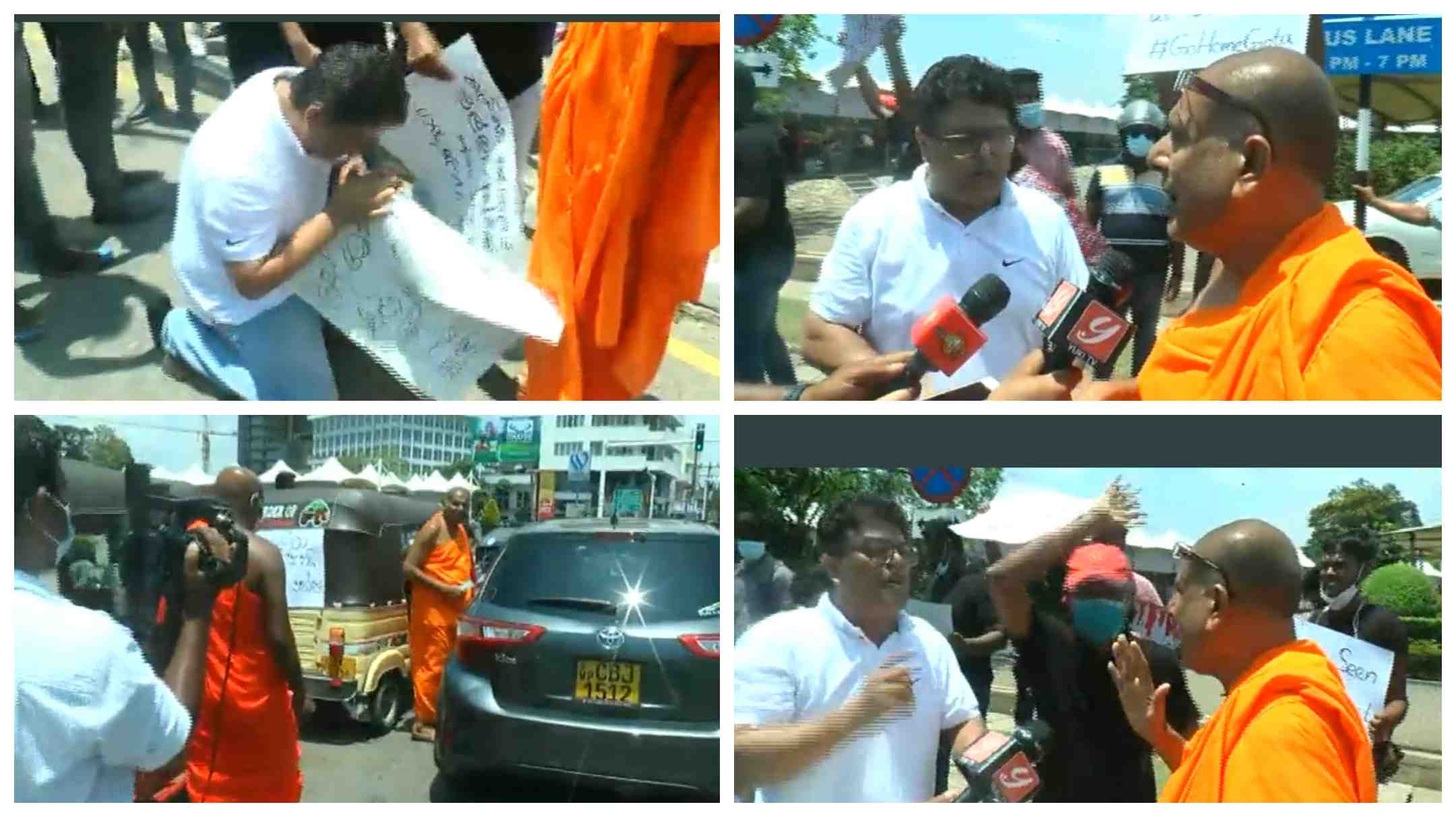 ލަންކާގެ މުޒާހަރާގައި ބައިވެރިވުމަށް މަސައްކަތްކުރި ސިޔާސީ ލީޑަރަކު އެސަރަހައްދުން ބޭރުކޮށްލައިފި